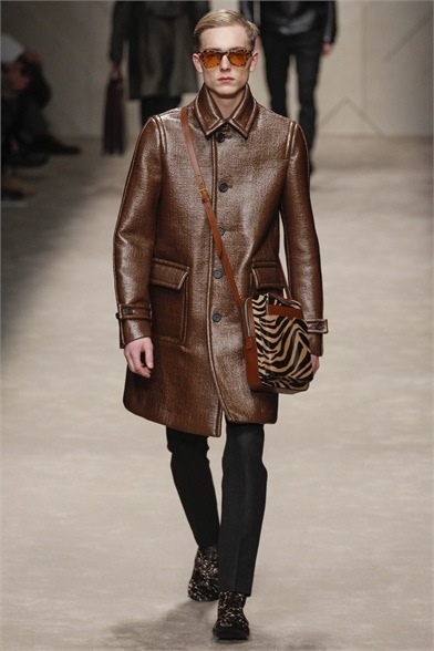 A sfilare nella prima giornata di questa fashion week meneghina troviamo il marchio british per eccellenza Burberry Prorsum. Per il prossimo autunno/inverno l’uomo vestirà lunghi capispalla con allacciature a quattro bottoni o a doppio petto abbinate a giacche e pantaloni dal taglio classico leggermente a sigaretta. L’importanza e anche la preziosità di questi capi unici la fanno gli inseriti in camouflage che ritroviamo anche nelle calzature. L’utilizzo di materiali innovativi e non, che vanno dalla pelle lucida al cavallino rasato al classico ton sur ton rendono il tutto estremamente contemporaneo e allo stesso tempo giovanile pur ricalcando in modo fedele i dettami della maison che predilige il classico stile british.