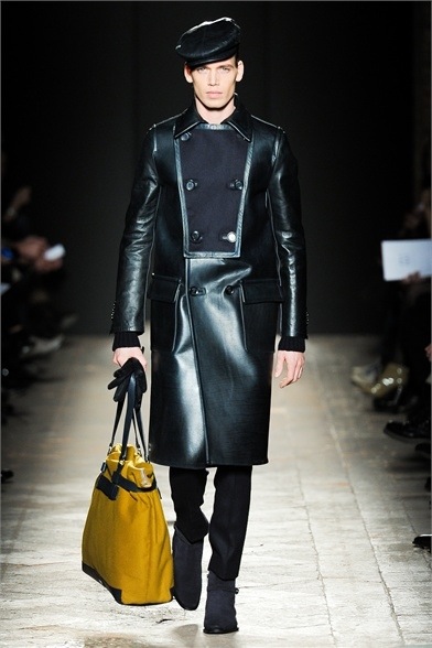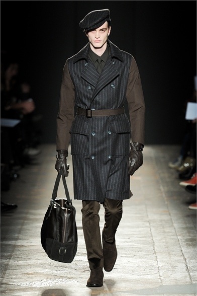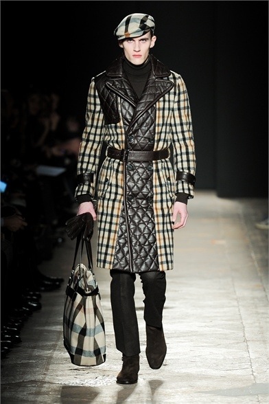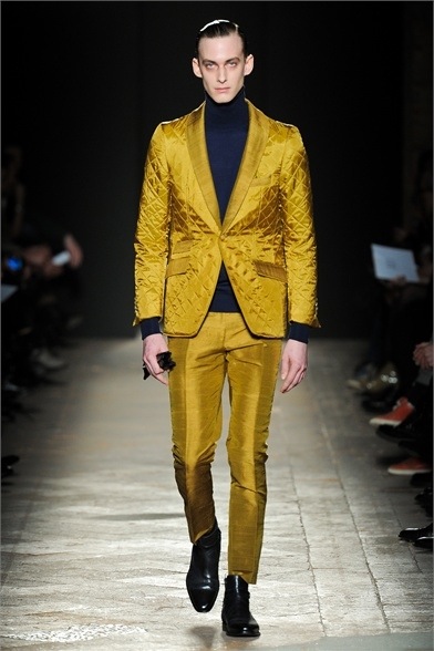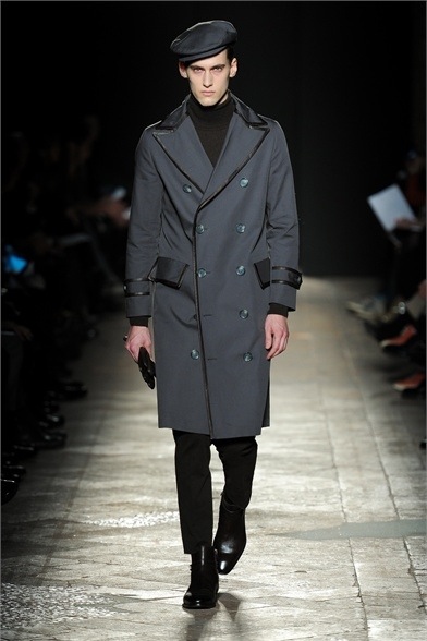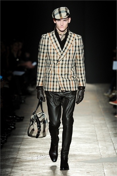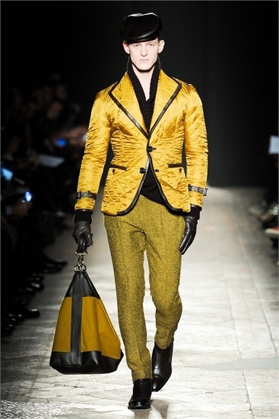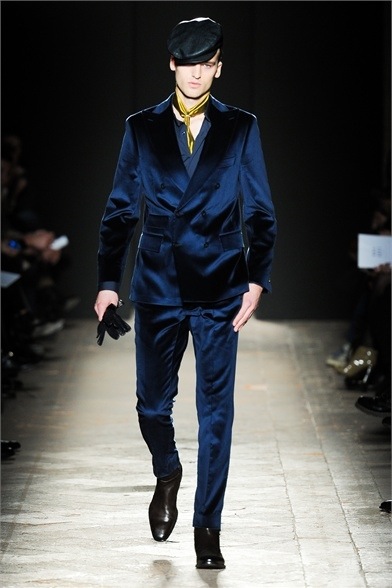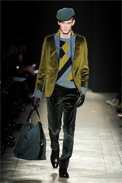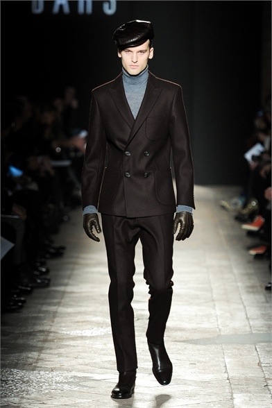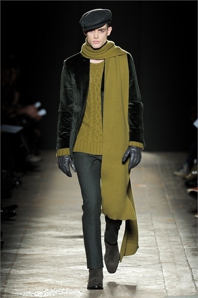 Il marchio inglese Daks si appresta a calcare le passerelle in questa seconda giornata di fashion week. L’uomo Daks e’ un uomo che veste uno stile molto esuberante grazie all’utilizzo di numerose tinte di colore che spaziano dal giallo acido/limone utilizzato per completi, capispalla, pantaloni, al verde oliva che viene accostato a colori come il marrone e il ceruleo. I tessuti prediletti dallo stilista sono il velluto declinato in ogni sua forma che utilizza sia per pantaloni che per giacche. Non mancano le tinte invernali del nero, utilizzato per la pelle e per il gessato dei cappotti, e il blu elettrico che assume un particolare effetto sia nel velluto che nel pellame. Tocco di dandismo inglese sono invece i capi realizzati in tessuto principe di Galles sui toni del marrone e del beige in coordinato con le borse. Maxi sciarpe, guanti, e baschi completano l’outfit.