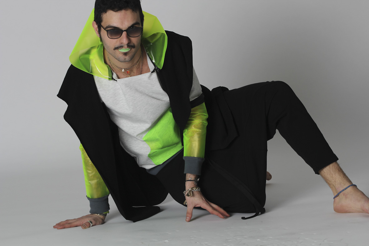 Uno, che vede me come “modello” -giustamente virgolettato- ed un secondo, di cui ben presto vi farò vedere le foto, dove mi sono “limitato” a selezionare, tra i giovani designer quelli che piu ritenevo coerenti, interessanti, belli, con un’idea che, poi a tempo debito, vi racconterò.