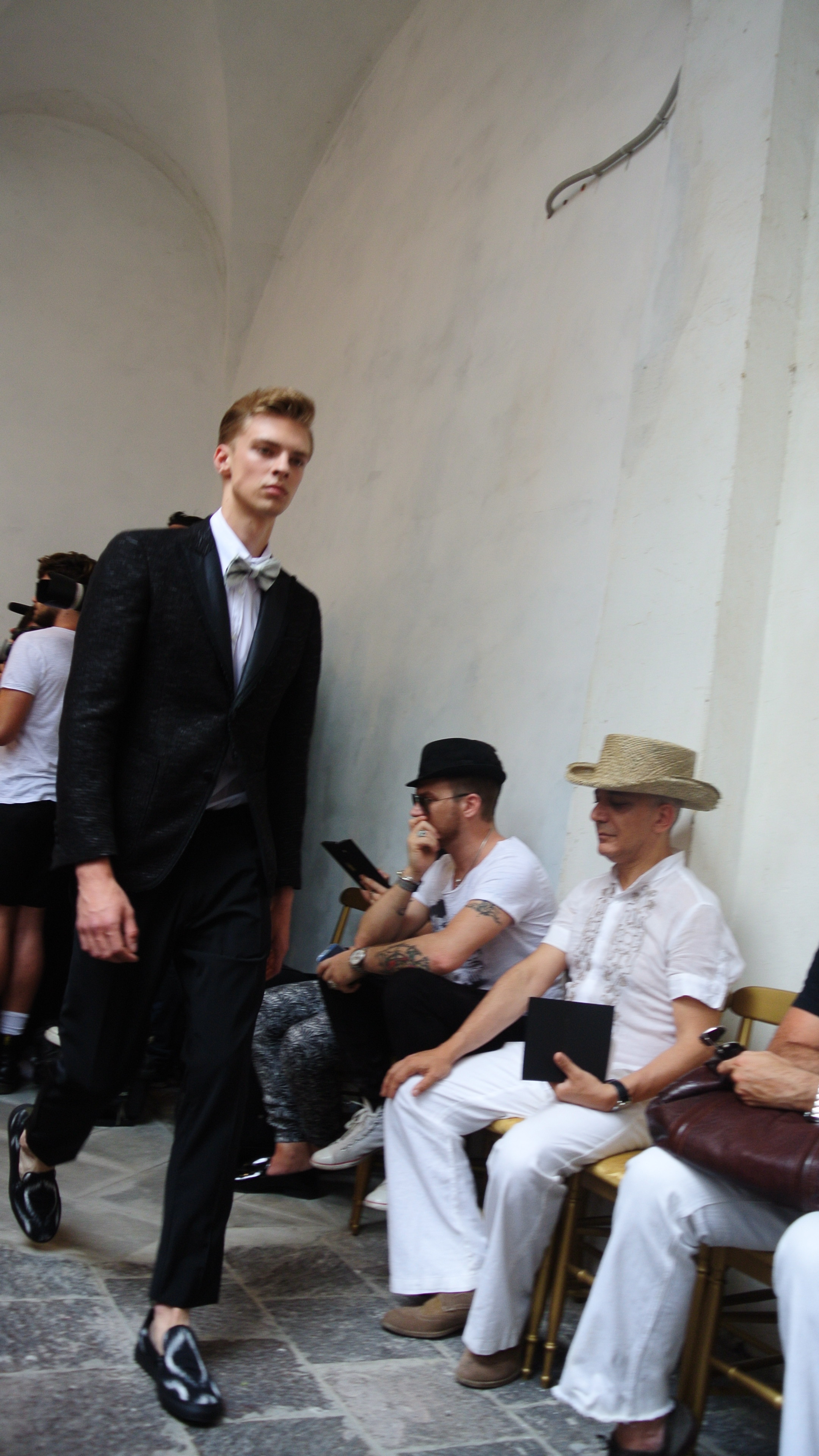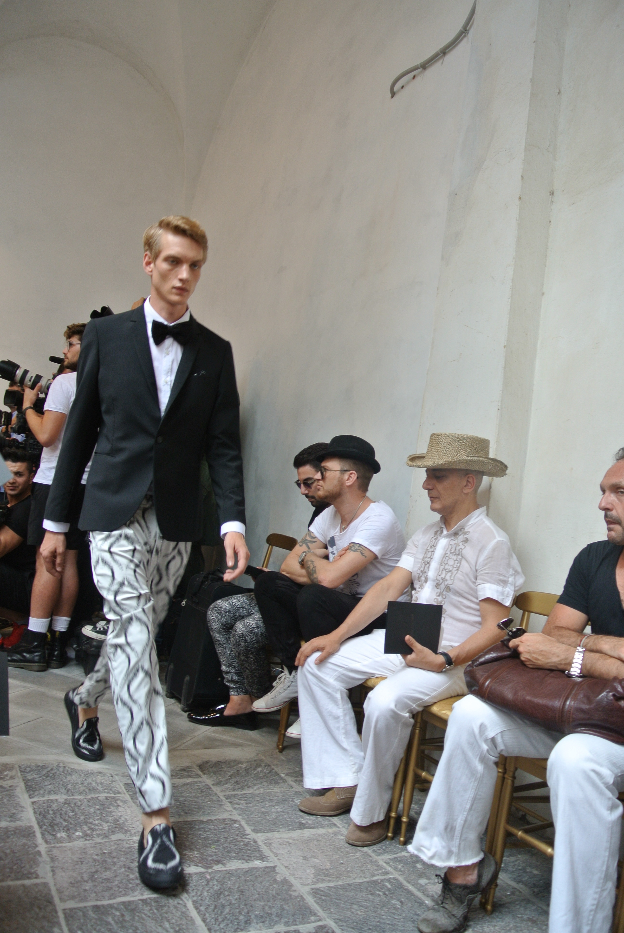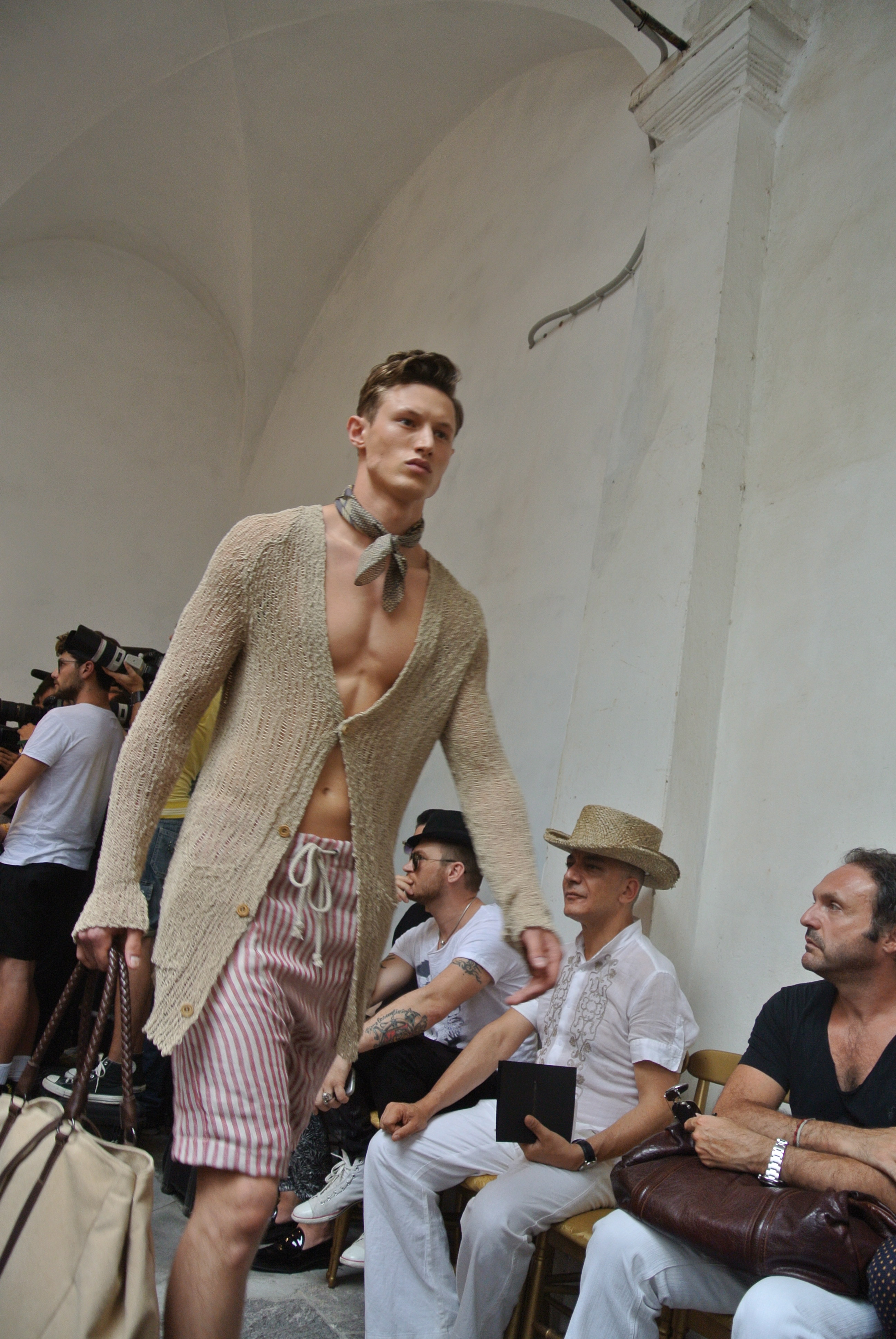 In breve tutta l’emozione di un antico gusto diventa squarcio di una moderna realtà. Nel conservare una storia, un’idea, il gusto per una giovane identità maschile, che sfida con carisma ed irriverenza una donna sensuale che accompagna in questa sfilata un uomo dal fascino suadente. Virilità etera che diventa rude espressione di conquista. Un messaggio, quelle di Messagerie, che viaggia attraverso i tempi traendo ispirazione da quei pizzi e delicati fazzoletti, per rileggere nell’era del camouflage e del canvas icone di stile inedite. Stropiccia, slava, e poi decora, impreziosisce di dettagli, Messagerie vola sulla storia come una colomba pronta a riconsegnare alla contemporaneità messaggi che vengo dal lontano: Casanova dell’era digitale.
