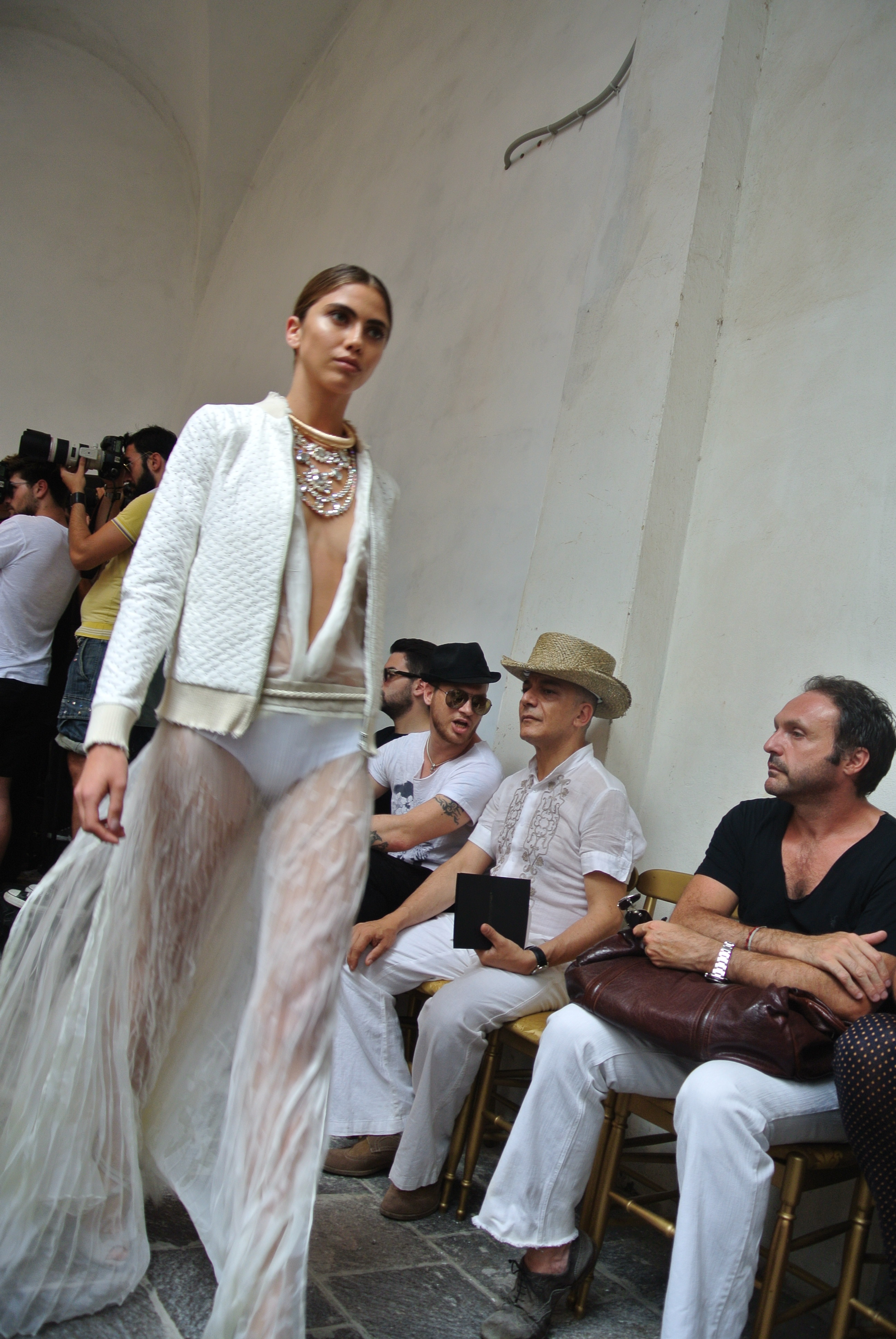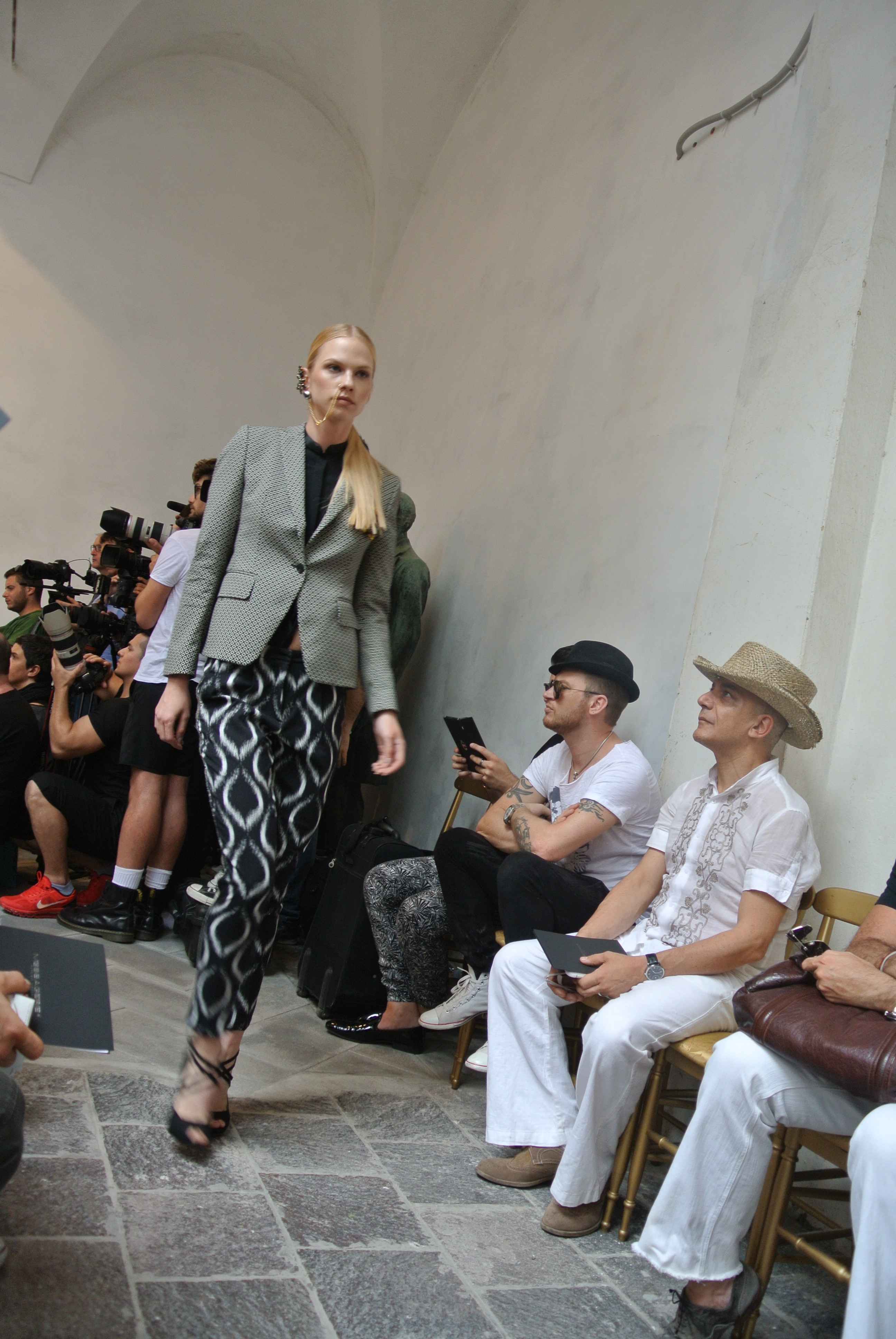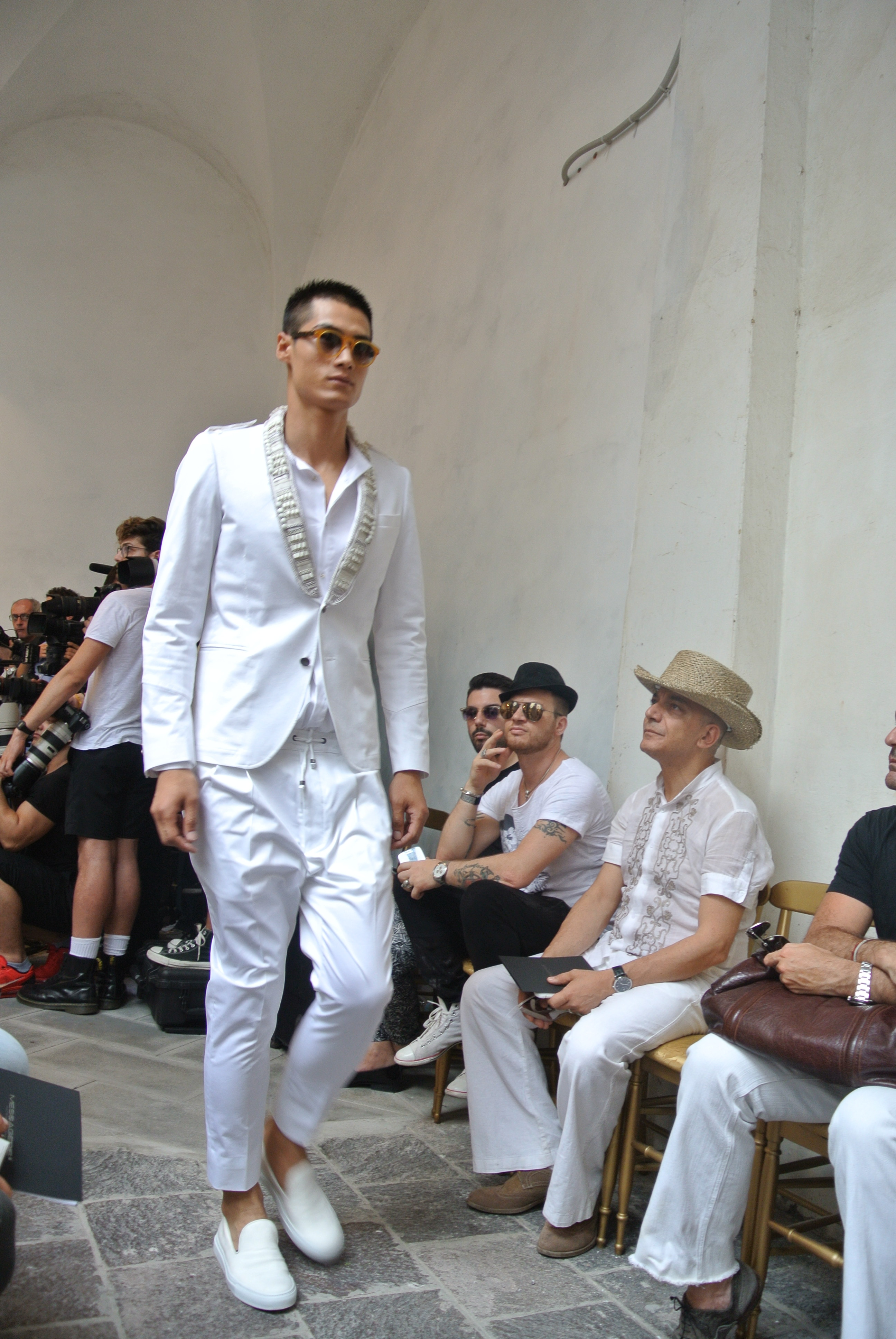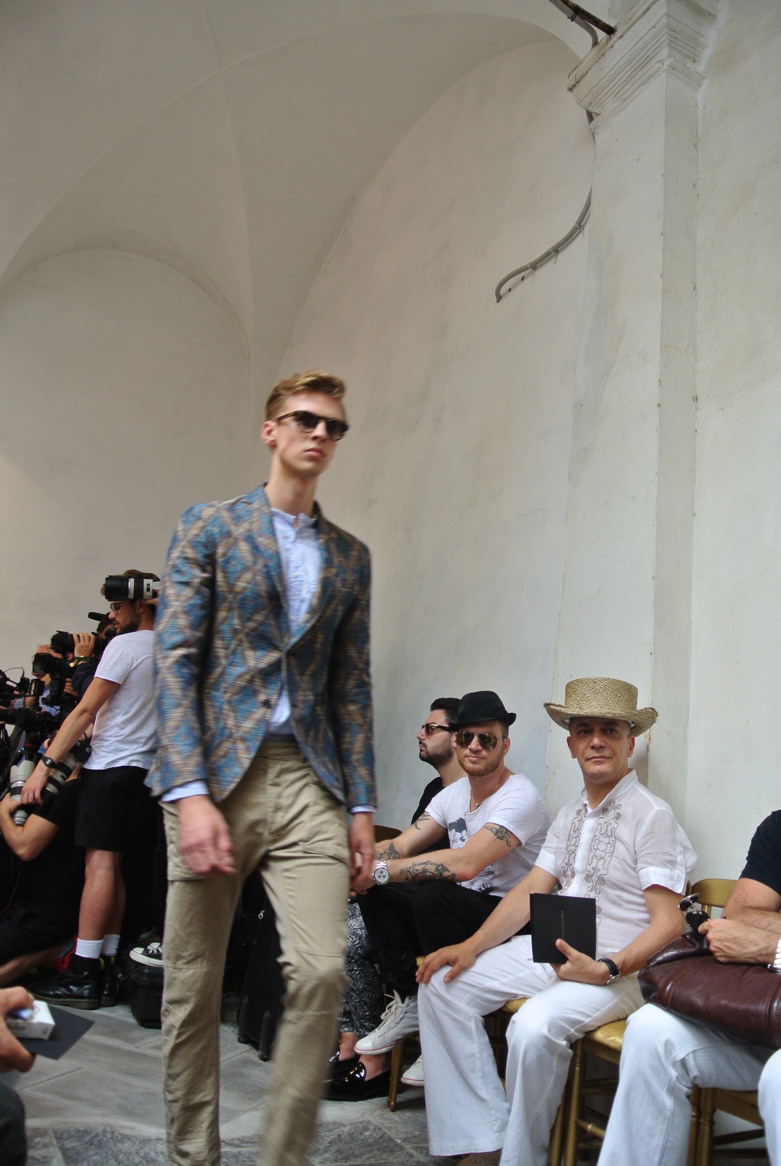 In breve tutta l’emozione di un antico gusto diventa squarcio di una moderna realtà. Nel conservare una storia, un’idea, il gusto per una giovane identità maschile, che sfida con carisma ed irriverenza una donna sensuale che accompagna in questa sfilata un uomo dal fascino suadente. Virilità etera che diventa rude espressione di conquista. Un messaggio, quelle di Messagerie, che viaggia attraverso i tempi traendo ispirazione da quei pizzi e delicati fazzoletti, per rileggere nell’era del camouflage e del canvas icone di stile inedite. Stropiccia, slava, e poi decora, impreziosisce di dettagli, Messagerie vola sulla storia come una colomba pronta a riconsegnare alla contemporaneità messaggi che vengo dal lontano: Casanova dell’era digitale.