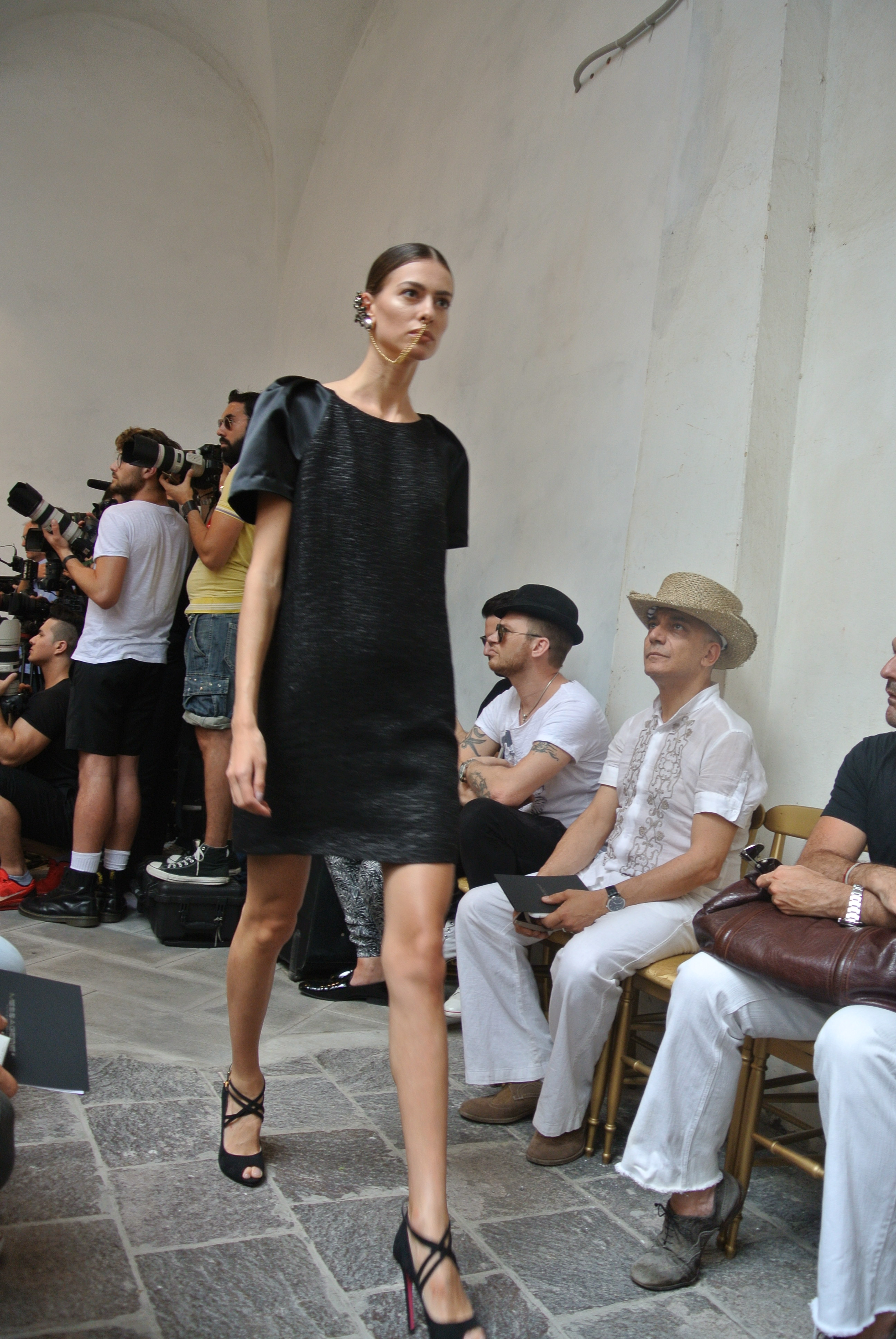 In questo barocco concertare, i fronzoli si linearizzano e danno vita a fit slim, che sanno arricchirsi del giusto rinforzo nei momenti di maggiore climax, conferendo alla sfilata un continuo gioco di volumi dell’affascinante alternanza.