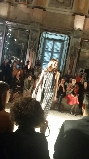 Eterea, in un gioco senza tempo, la donna Uma Wang gioca su tocchi leggeri che si declinano nelle tonalità del blu mare, nei toni sabbiosi della terra. Le righe sono verticali, sottili e disegnano su forme morbide e mai fascianti diventando sinuose e leggere, sino alla caviglia, circondati da motivi floreali che profumano di antiche stampe, giocano coi cromatismi dal sabbia.