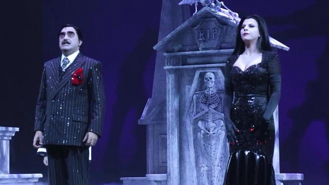 Geppi Cucciari ed Elio sono gli abili ballerini del seducente tango che avvolge l’amore di Morticia e Gomez che con il loro humor e savoir faire, intrattengono la platea magistralmente accompagnati da tutto il corpo teatrante. Un musical da vedere nelle sue continue evoluzioni che lascia curiosi attimi di profonda riflessione sulla vita, un vivace modo di leggere le righe contorte della mente umana. Il Teatro della Luna ospita uno spettacolo che, oltre agli abiti di scena, fá brillar gli occhi per i talenti, le musiche ed i colori.