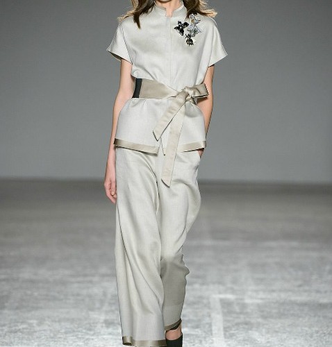 Colori primari che sottolineano l’essenzialità. Dicevamo dell’importanza di un’essenza; la pulizia e l’eleganza ritornano a quella loro definizione di semplicità che non vuol dire banalità: esaltare se stessi attraverso le arti della seduzione. Colori che lasciano al calore umano dar vita a palette vive, che brillano e arrossiscono lungo la passerella. Diventa chiaro come quelle gonne color di gote, segnano il fanciullesco scoprir del cuore, e con quali occhi color di gemme esse decorino visi e la pelle. Piccoli dettagli, come occhi, che seppur dettagli, parlano dell’anima.